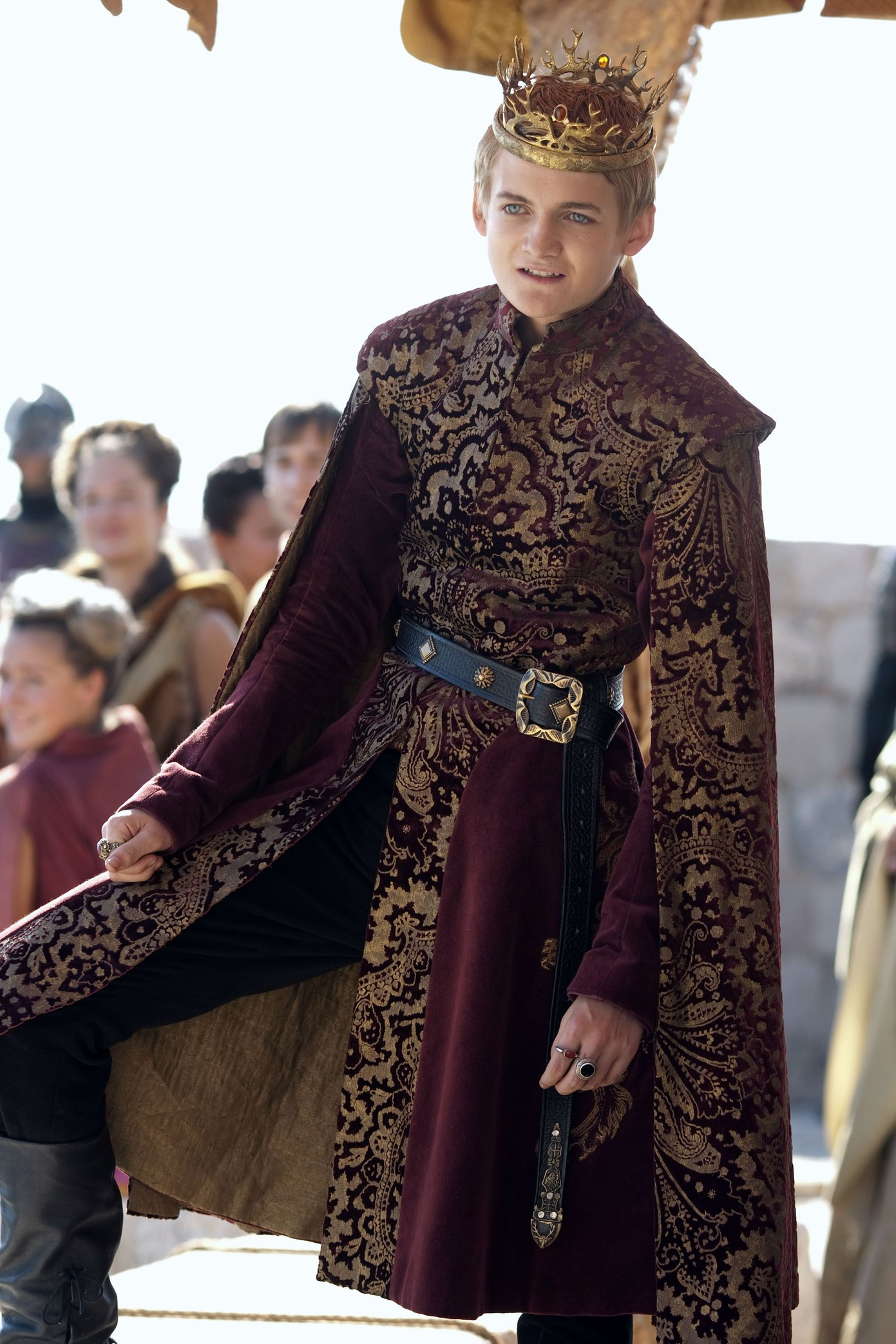 If Joffrey has one redeeming quality, it’s his royal drip. He may have been an objectively horrible king, but no one can accuse him of failing to serve. Joffrey’s crown features the Baratheon antler motif, but his clothes tend to be Lannister red and gold, a reminder to the audience that he’s a Lannister in all but name. The cape-like sleeves also give him a very peacock-like, showy appearance. He looks like he’s playing dress up as a king because, well, he is. He has a lot of power, but he takes very little part in the actual work of ruling.